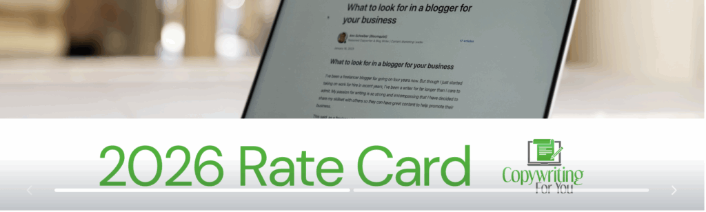 Take a look below at the pricing section from the 2026 Copywriting For You rate card, as an example: